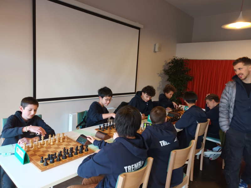 Retour matinal au Tremblay-en-France pour affronter une équipe redoutable. Les petits ont eu affaire à des très bons joueurs (dont un tout jeune vice-champion d’Europe…) et ont réussi à ramener 1 seul point sur les 4 possibles dans des parties qui se sont étirées plus de 2 heures.